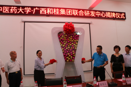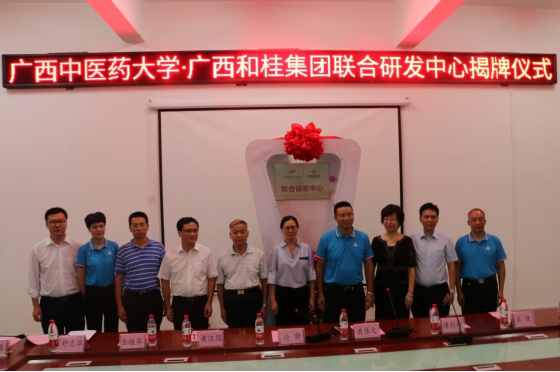 7 月 14 日,“beat365官方网站-广西和桂集团联合研发中心”揭牌仪式在beat365官方网站达道楼4楼药学院会议室隆重举行。