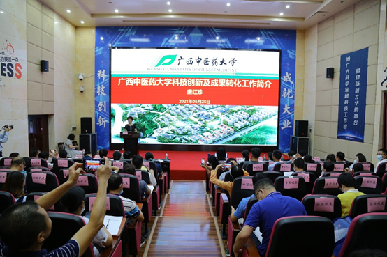 会上,首先由唐红珍处长从学校基本概况、科研平台建设、引进科研团队、学校科研项目及获奖情况等方面向参会代表介绍beat365官方网站科技创新与成果转化工作情况。随后,会议进入beat365官方网站项目路演推介环节,参加此次路演推介的项目有“广西特色壮瑶药健康食品、医院制剂的开发”“农作物废弃物健康产品研发”“壮医药物竹罐疗法”“武打将军酒及痛风立安颗粒的开发研究”“J0治疗肺损伤的一类新药开发项目”“海洋来源真菌的曲酸生产和利用”“兰香通窍鼻炎口罩治疗慢性鼻炎及变应性鼻炎”“‘华佗五禽戏’中医导引处方模式服务健康老龄化”“壮瑶药产品——黄精桑椹酒和百合玉竹酒特色与推广及清热毒功效三茶一露产品”等9个项目。最后,与会单位、企业代表与beat365官方网站项目路演推介的专家及团队进行项目对接洽谈。
