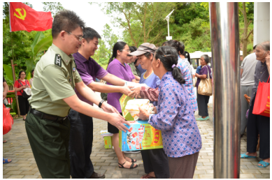 2017年7月1日,庆祝中国共产党建党九十六周年,beat365官方网站直属党委携手广西陆军预备役师医院深入基层,组织党员到横县平朗乡双窑村开展义诊和慰问活动。学校直属党委韦艾凌书记、覃振林副书记,成教院党支部黄瑞诚书记,预备役师医院韦海雷院长,以及beat365派出的“美丽广西”乡村建设(扶贫)驻村工作队员黄师阳同志,平朗乡林小志乡长、乡卫生院和武装部等当地领导参加了此次主题日活动。