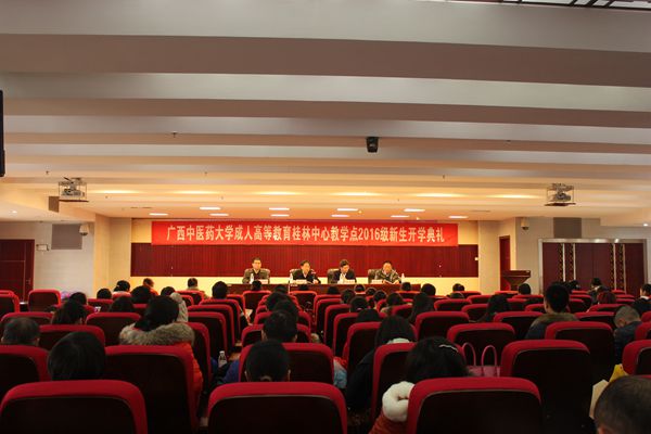 2016年1月10日上午,学校成人高等教育桂林教学点2016级新生开学典礼在桂林市中医医院会议室隆重举行。学校罗伟生副校长、成人教育学院黄瑞诚副院长、桂林教学点的主要负责人以及教学点的新生代表80余人参加典礼。开学典礼由桂林教学点的负责人秦祥然老师主持。