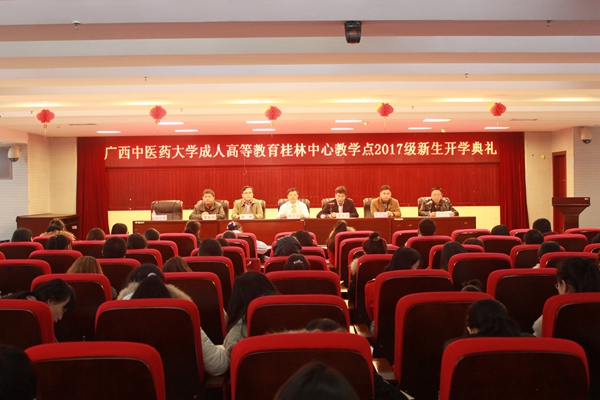 成人教育学院党员干部贯彻“两学一做”精神,结合成人高等教育的特点,牺牲假日休息时间,顶风冒雨,规范办学,将一年一度的新生开学典礼在各教学点有序进行。继1月4日学校本部2017级新生开学典礼,桂林、柳州、北流等教学点也陆续举行了规范的开学典礼。直属党委书记、成人教育学院院长韦艾凌博士、成人教育学院副院长黄瑞诚及成教院部分职能科室人员参加了1月8日、15日、21日分别在桂林、柳州和北流教学点举行的开学典礼。并在22日对苍梧教学点2015级、2016级学生的上课进行了检查督导。