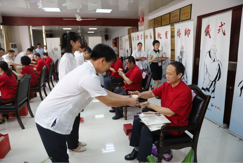 与会领导分别为指导老师代表颁发了聘书,并见证了古朴庄重的拜师仪式,梧州市中医医院班师承学员们分别行拜师礼。学员们表示通过拜师,读经典,学心得,早临床,进一步传承中医,发扬中医。
