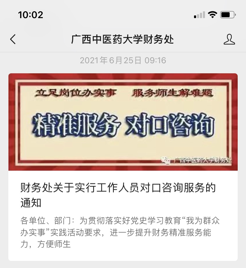一是开展上门服务。处领导带队深入药学院、公管学院、护理学院、针推学院、壮医药学院、瑶医药学院、马克思主义学院等二级学院与师生员工进行调研,听取群众心声和建议,并宣讲财务政策。