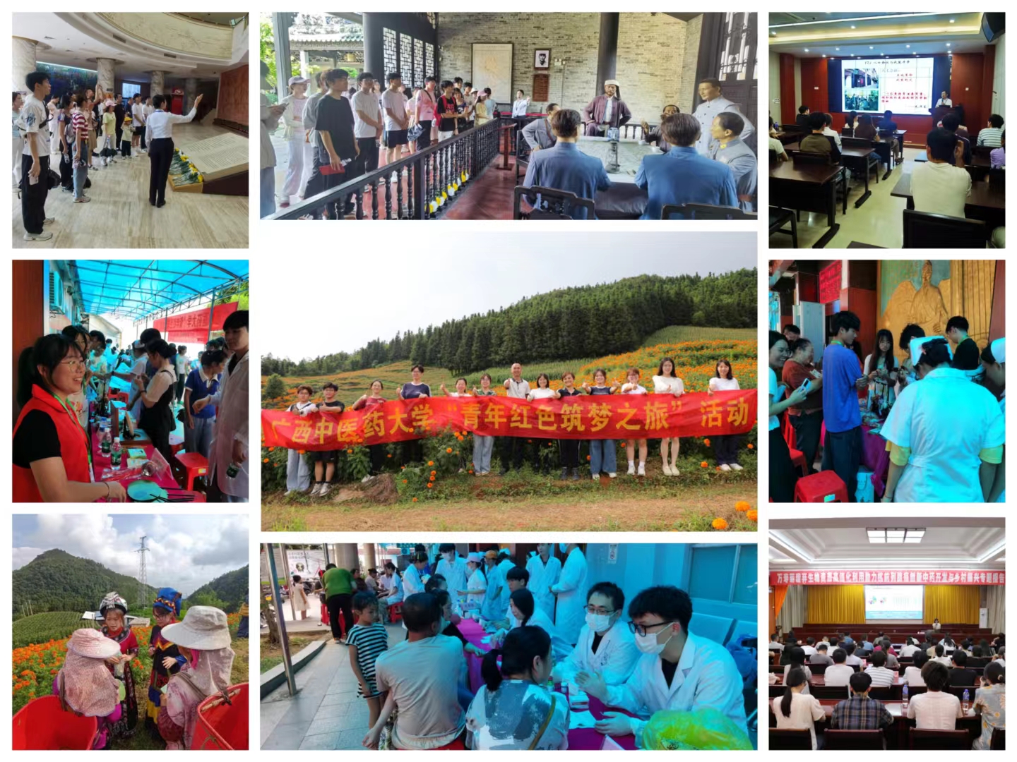 为深入贯彻落实习近平总书记关于教育的重要论述和给“青年红色筑梦之旅”大学生重要回信精神,7月30日—8月1日,创新创业学院与学生工作处组织义诊医生、科技特派员、中国国际大学生创新大赛项目团队等30余名师生前往广西百色市、隆林各族自治县开展2025年“青年红色筑梦之旅”活动。通过红色研学、科技助农、健康义诊、中医药文化宣传及普法、专题报告会等形式,引导师生把课堂知识“向下扎根”在革命老区的田间地头,让中医药创新成果“向上生长”为乡村振兴的强劲动能。