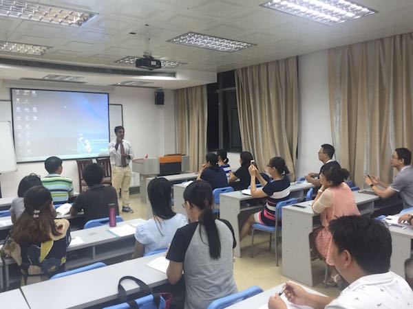 首届临床医学双语教师培训班正式开班 发布时间:2016-09-06 11:35:18 浏览次数: 次 【字体:小 大】 2016年9月5日晚,beat365首届临床医学双语教师培训班在明秀校区展六教室正式举行,beat365教师积极参与了此次培训。 该培训班从9月5日始到9月30日,每周一至五晚19:30-21:30在明秀校区展六教室举行,授课内容包括临床医学双语教学基础、解剖及组胚专业授课指导等,在临床医学教学基础课中包括医院基础医药用语、社区医学用语、医生与患者交流用语、护士与患者交流用语、医药及手术用语以及询问病史。授课教师由常年全英教授临床医学的专业外教Dr. Aziz担任,欢迎学校其他老师共同参与学习。 培训班授课现场 专业外教为beat365教师上课临床医学双语教师培训班部分教师合影留念 分享到: 【打印正文】