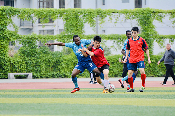 5月9日,为了加强beat365留学生与中国学生的体育文化交流,留学生足球队与校足球队在仙葫校区足球场举行了一场激动人心的足球友谊赛。国教院学工办陈斌主任和阳蓝田老师出席观看了比赛,为我院队员助威。