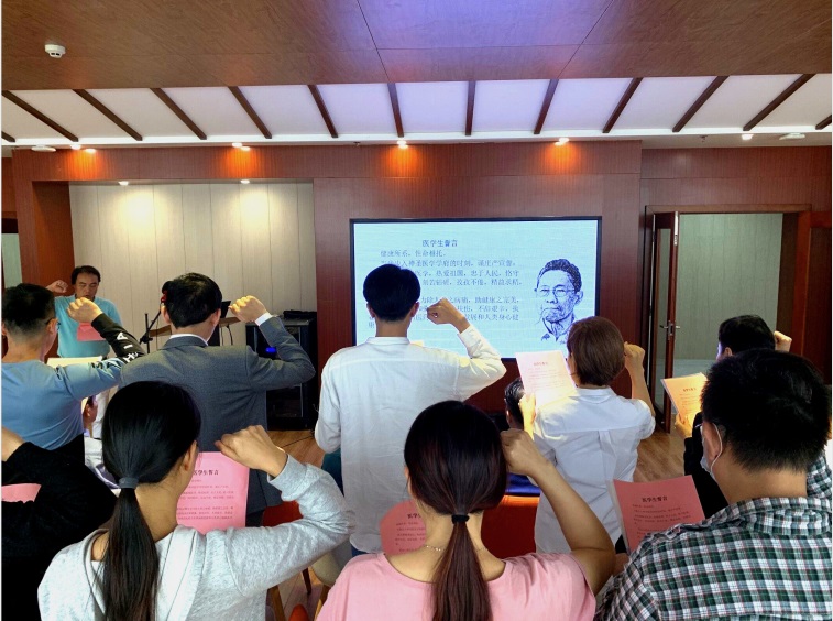 典礼上,蒋基昌院长希望香港新生在未来的医学道路上,不仅要成为一名有真材实料、本领过硬的医生,更要心怀祖国,把自己的医学梦和中国梦相结合,为桂港合作、大湾区的建设及祖国的发展贡献出自己的力量。韦文朗副院长亲自领誓《医学生誓言》,2020级新生代表庄严宣誓,将为祖国医药卫生事业的发展和人类身心健康奋斗终生。社区警官谢尉安就同学们在校学习期间常见的法律问题、人身财产安全问题做了全面细致的讲解,加强了同学们的安全意识。周德智力副主任在座谈会上了解同学们的基本生活情况,分享了如何更快适应广西生活的经验,让同学们倍感亲切和温暖。典礼间隙,国教院还组织新生参观了留学生楼的公寓。