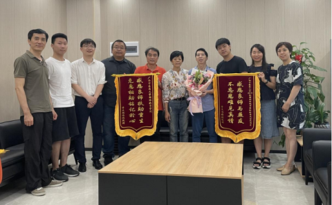 2021年6月29日上午,时隔3个月后,国际教育学院2019级传统中医班的刘同学(来自香港)又回到了学院,专程携夫人来向老师和同学们赠送锦旗表示感谢。韦文朗副院长、国教院的老师和部分同学在院长办公室会客室与刘同学夫妇友好地交谈,看到刘同学良好的康复大家由衷欣慰和高兴,韦副院长高度赞赏了所有参与到救治过程的老师和同学们。