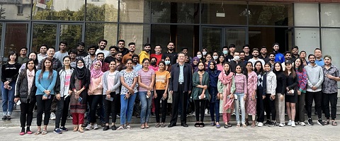 3月6日下午,蒋基昌院长在国教院310展厅,用英文向所有在校留学生致欢迎辞,并郑重地教授了“开学第一课”。他结合自己几十年外事工作经历,介绍了国家、学校的历史变迁和高速发展,让留学生了解道,中国能够取得今日之伟大经济成就和中国共产党的领导密不可分。蒋院长还向留学生们介绍了新学期教学安排情况,建议同学们保持学习和生活的平衡,严格遵守学校和医院的规章制度,保持良好学风考风。如遇上问题,第一时间报告辅导员,通过正规途径反映问题和解决问题。课后,学工部主任陈斌老师还针对疫情防控、宿舍厨房用电安全、交通安全、防电信诈骗以及考试作弊等方面进行了安全提示。