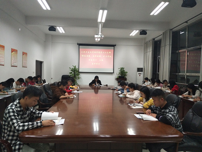 1023日晚,公共卫生与管理学院学工第二党支部不忘初心、牢记使命主题教育在仙葫校区大学生活动中心A317举行。二支部副书记庞邦君同志带领全体党员、预备党员开展了集中学习及深入研讨。