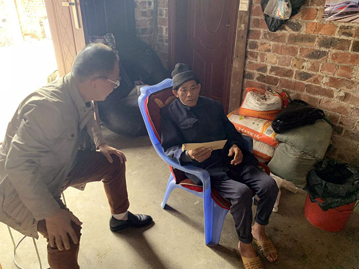 当天,学院党总支书记李怀泽、院长董柏青、副书记凌泽农、副院长王碧艳带领帮扶干部及党员代表,深入扶贫点隆安县南圩镇联伍村,开展走访慰问送温暖活动。走访中帮扶干部认真询问各户的家庭基本情况、产业收入情况和身体健康状况,并送上慰问金。走访结束后,李怀泽一行在驻村书记兰庆同的协助下,召开了帮扶宣讲会,会上,李怀泽结合“不忘初心、牢记使命”主题教育向到场参会人员分享了两年以来进村帮扶的体会,指出每次进村都能看到巨大变化,路修好了,产业带动起来了,生活有盼头了,要感恩中国共产党不忘从群众中来的根本和国家的好政策。