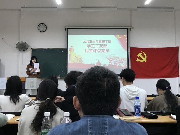 2019年12月3日下午,公共卫生与管理学院学工二支部在教学楼1-118召开党支部组织生活会暨“不忘初心、牢记使命”主题教育阶段总结大会,我院学工二支部在校党员及预备党员参加了此次会议,会议由学工二支部书记鲁蕴律主持。