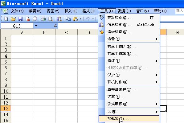 (1)安装完成进入Excel后,在[工具]菜单(如下图所示)中点击加载宏选项之后,