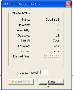 如果在编译阶段期间没有发现模型错误,LINDO将开始实际求解模型。当Lindo的内部求解器启动时,它将在屏幕上显示如下状态窗口(Status Window):