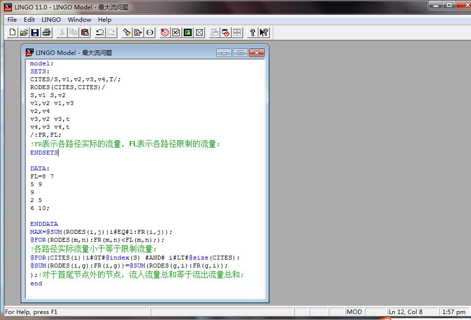 然后LINDO将跳到发生错误的那一行。你应检查这一行的语法错误并改正它们。