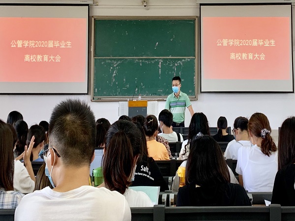 6月17日下午,公管学院在仙葫校区教学楼1-301召开2020届毕业生离校教育大会,全体2020届毕业生参加了本次会议。我院毕业班辅导员宋南负责讲授本次教育主题。