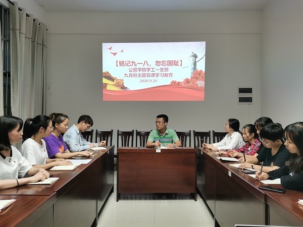 2020年9月24日下午,公管学院学工一支部在大学生活动中心A112开展本月“三会”学习教育,支部书记宋南以及支部全体学生党员参加了会议,会议由宋南主持。