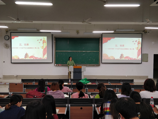 随后全体党员听取唐梧茜老师授党课,题为“学好用好《习近平谈治国理政 第三卷》”的党课。党课凝练出六个方面,在理论创新、发展思想、深化认识、自我革命、寻找方法论、保持精神这六方面指明了相应道路,党员获益良多。
