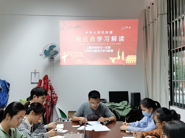 公管学院学生一支部开展十月主题党日活动--学习解读《中华人民共和国民法典》