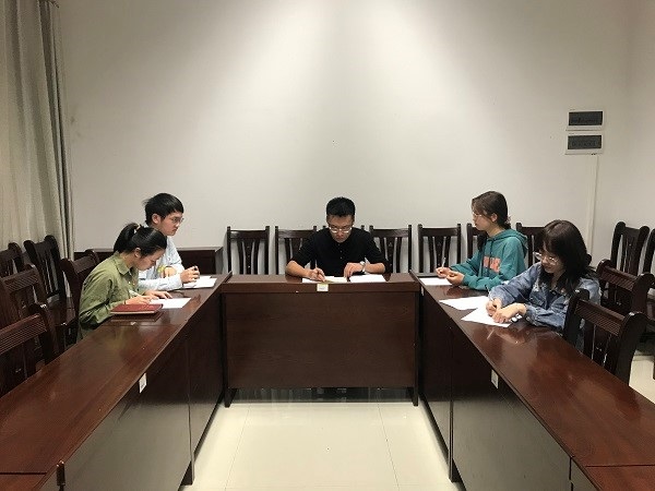 其次,支部书记宋南和全体在校党员对推优发展对象的同学进行评议。通过同学的自我介绍,对其学习情况、社会实践情况以及任职经历进行了解。全体党员自由发言,充分民主评议后,进行不记名投票,选出票数最高的15名同学进入支委评议。随后支部委员进行商讨,通过不记名投票,最终评定出郑欣怡等12名同学成为本次发展对象。