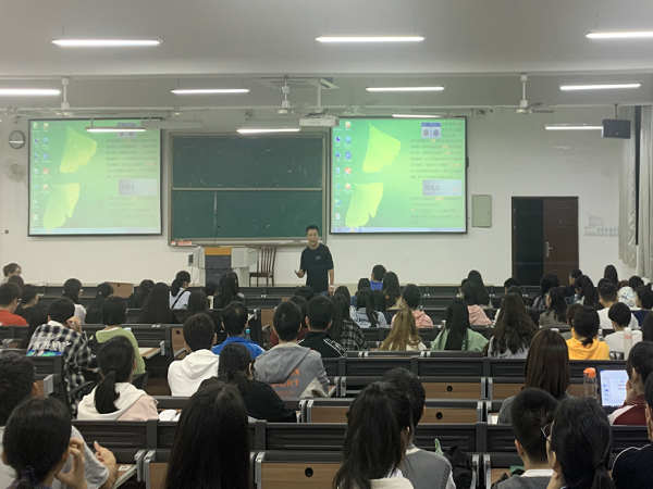 会议开始,宋南老师向全体新生强调了大学期间个人综合素质能力锻造和就业创业选择的重要性,并对刘宇彬学长的履历做了简单介绍。随后,刘宇彬结合在校期间的学习工作情况和自身创业经历展开分享,讲述了其创业初期的成功和创业中期的失败,分享了“感恩”、“榜样”、“主动”、“心态”、“突破”的创业感悟。让同学们深刻感受到创业的艰辛,也进一步明确了学习及职业规划的重要性。“江山代有才人出”,学长表示大学生是创新主力军,同学们应多参加各项活动,不断锻炼自己,提高自身能力,为往后的发展之路打下坚定的基础。最后,唐梧茜老师希望同学们可以从学长的分享中得到启发,明确个人今后的奋斗目标和发展规划。