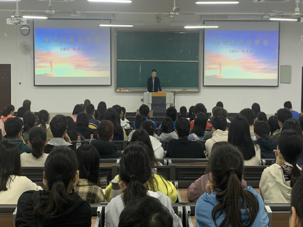 11月15日18:00,公共卫生与管理学院于在仙葫校区教学楼1-201成功召开了创业经验分享会。我院学生工作办公室主任宋南、新生辅导员唐梧茜及全体2020级新生参加了本次分享会,会议邀请了2014级优秀毕业生刘宇彬进行创业经验分享。
