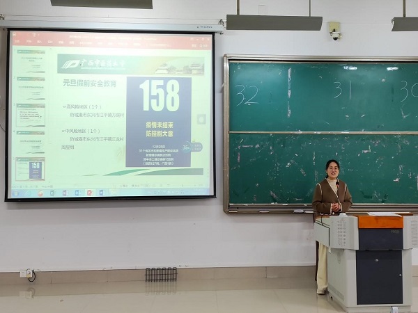 会上,唐梧茜首先结合具体事例,强调了考试作弊、考试证件缺失、考试迟到等问题对同学们的不良影响。其次,唐梧茜就当前全国级广西疫情防控严峻形势,要求同学们元旦放假期间“非必要不离邕”、“非必要不离校”,必要外出的同学需要严格执行钉钉请假离校手续,并做好自我防护。接着,唐梧茜对11月存放违禁电器的情况进行通报,使同学们认识到使用违规电器的严重性,并提醒同学们切勿存在侥幸心理,严格遵守校纪校规。