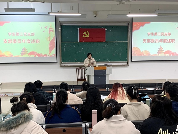 公共卫生与管理学院学生第三党支部2022年1月9日晚在教学楼1-201召开了1月支部党员大会,会议由支部书记唐梧茜主持,支部全体党员及入党积极分子参加本次大会。