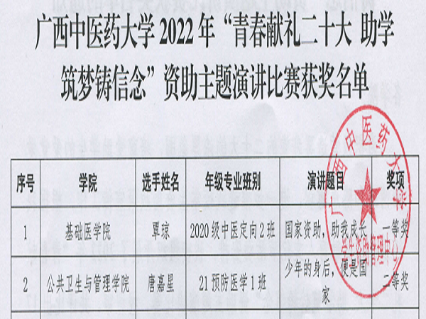 我院学子在校资助主题演讲比赛中获奖 来源:公共卫生与管理学院学生工作办公室 作者:宋南 发布时间:2022-06-04 11:46:36 浏览次数: 次 【字体:小 大】 在beat365第一届资助育人文化节活动主题演讲中,我院2021级预防医学院专业唐嘉星获得二等奖第一名,被学校推荐参加自治区演讲比赛。 分享到: 【打印正文】