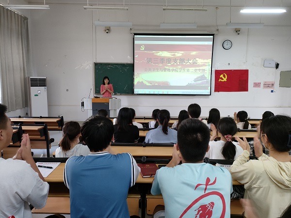 7月1日下午,公共卫生与管理学院党总支学生第二党支部于仙葫校区教学楼2-203组织召开了2022年第三季度支部大会。本次会议由党支部书记鲁蕴律主持。