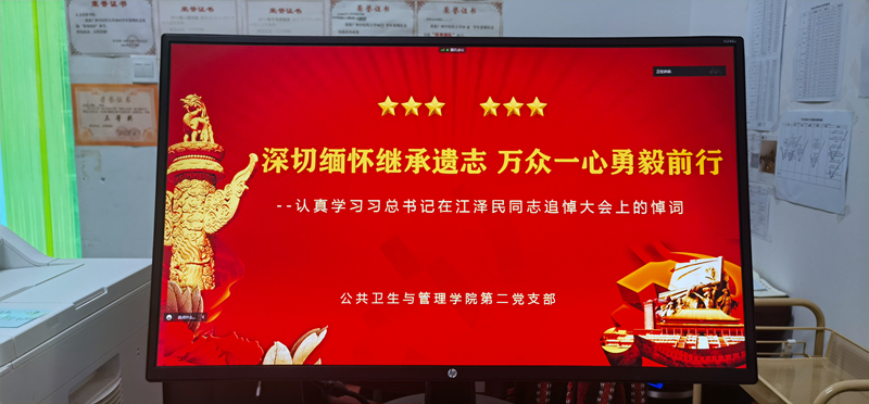 12月21日下午,公共卫生与管理学院学生第二党支部在腾讯会议组织召开了12月支部大会。本次会议主题为“认真学习习近平总书记在江泽民同志追悼大会上的悼词”由第二支部书记鲁蕴律主持,支部全体党员参加了会议。