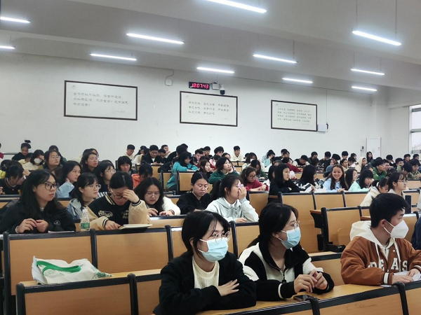 “告别疫情时代,回归正常大学生活”,唐梧茜对同学们全面开放的校园生活提出了新的要求;“校园安全生活”,唐梧茜结合大学生从宿舍上铺坠亡的事例提醒同学们注意生活细节,保护自身安全,并再次强调大功率电器的禁用。“学业永不懈怠”,唐梧茜鼓动同学们积极参加各类创新创业比赛和学科竞赛,提出“行动是克服焦虑最好的解药”,以此激励同学们认真复习,预祝同学们在期末考试中取得理想成绩,并对大家在新学期的表现提出殷切期盼。