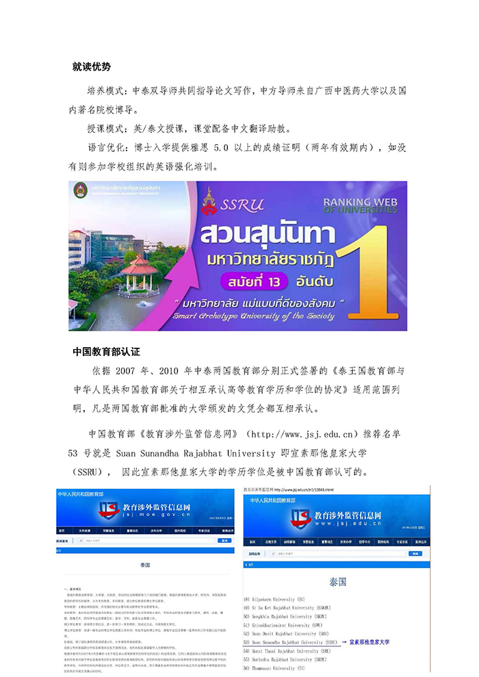 泰国宣素那他皇家大学公共卫生硕博专业招生简章
