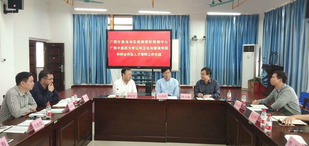 11月12日下午,广西壮族自治区疾病预防控制中心由杨文敏主任带领一行4人莅临beat365公共卫生与管理学院进行工作交流,beat365吴琪俊副校长出席了交流会,会议由公共卫生与管理学院院长董柏青主持,副院长凌泽农、校教务处韦维处长以及公共卫生与管理学院的6位老师代表参加了交流会,与自治区疾控中心就科研合作及人才培养等问题广泛交换了意见,并对下一步的具体合作内容达成了初步意向。