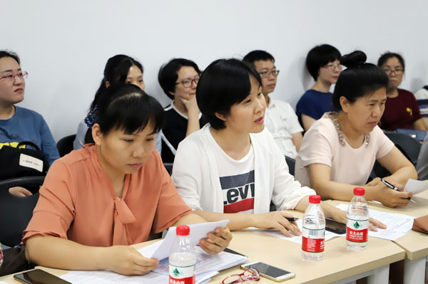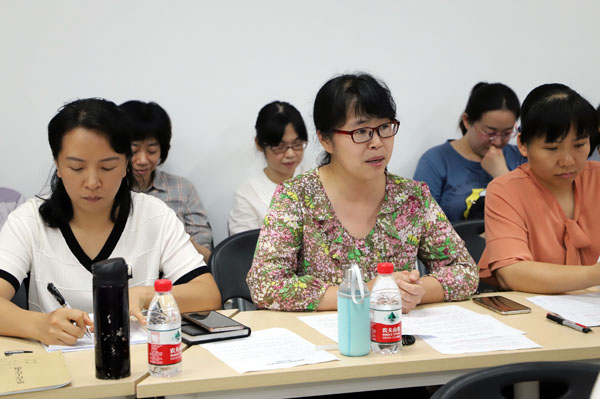 教师代表传统文化与艺术教研室熊素玲老师发言(前排中)