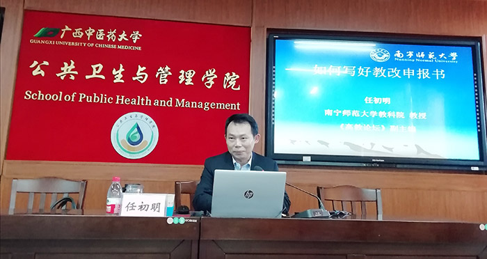 南宁师范大学任初明教授到beat365作《如何写好教改课题申请书》专题讲座