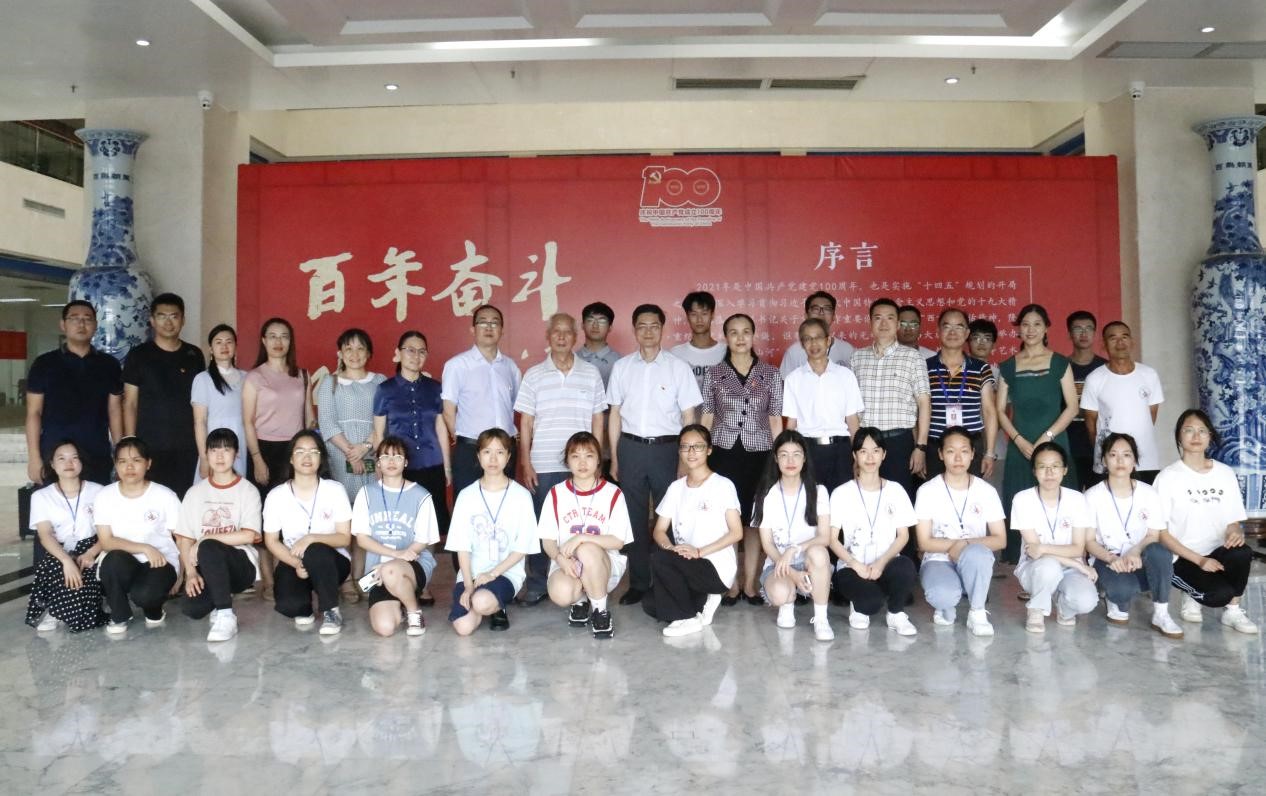 6月29日,“百年奋斗 水墨山河”beat365官方网站庆祝中国共产党成立100周年暨廉政教育书画展在仙葫校区图书馆二楼开展。学校党委书记尤剑鹏参观展览,党委副书记何并文、纪委书记韦雪芳,学校相关部门负责人出席开幕式。