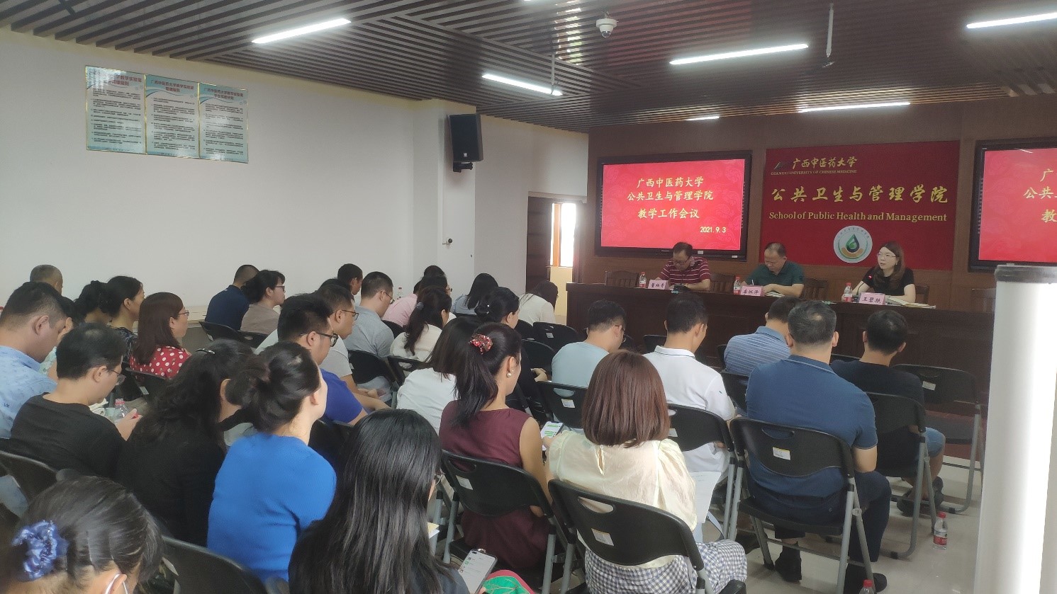 2021年9月3日上午,我院在自诚楼A801召开2021-2022上学期教学工作会议,参加会议的有公共卫生与管理学院党总支书记李怀泽、院长董柏青、副院长王碧艳,学院50余名专、兼职教师。会议由董柏青院长主持。