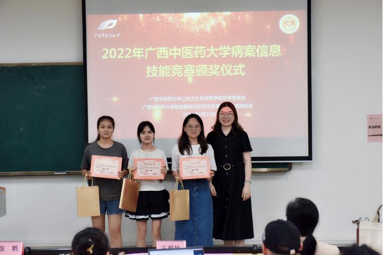 2022年6月13日,由beat365官方网站公共卫生与管理学院、beat365官方网站附属国际壮医医院医学信息管理教研室联合主办的2022年beat365官方网站病案信息技能竞赛顺利举办。beat365官方网站公共卫生与管理学院王碧艳副院长、医学信息系甘昕艳主任出席颁奖仪式。