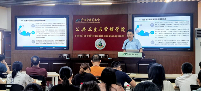 最后,李海副院长指出目前我院在教学、科研、学科建设方面的短板,与区内其他高水平公共卫生学院的主要差距,动员全院师生团结一致、努力拼搏,为建设具有广西特色、中医药特色的高水平公共卫生学院而奋斗。