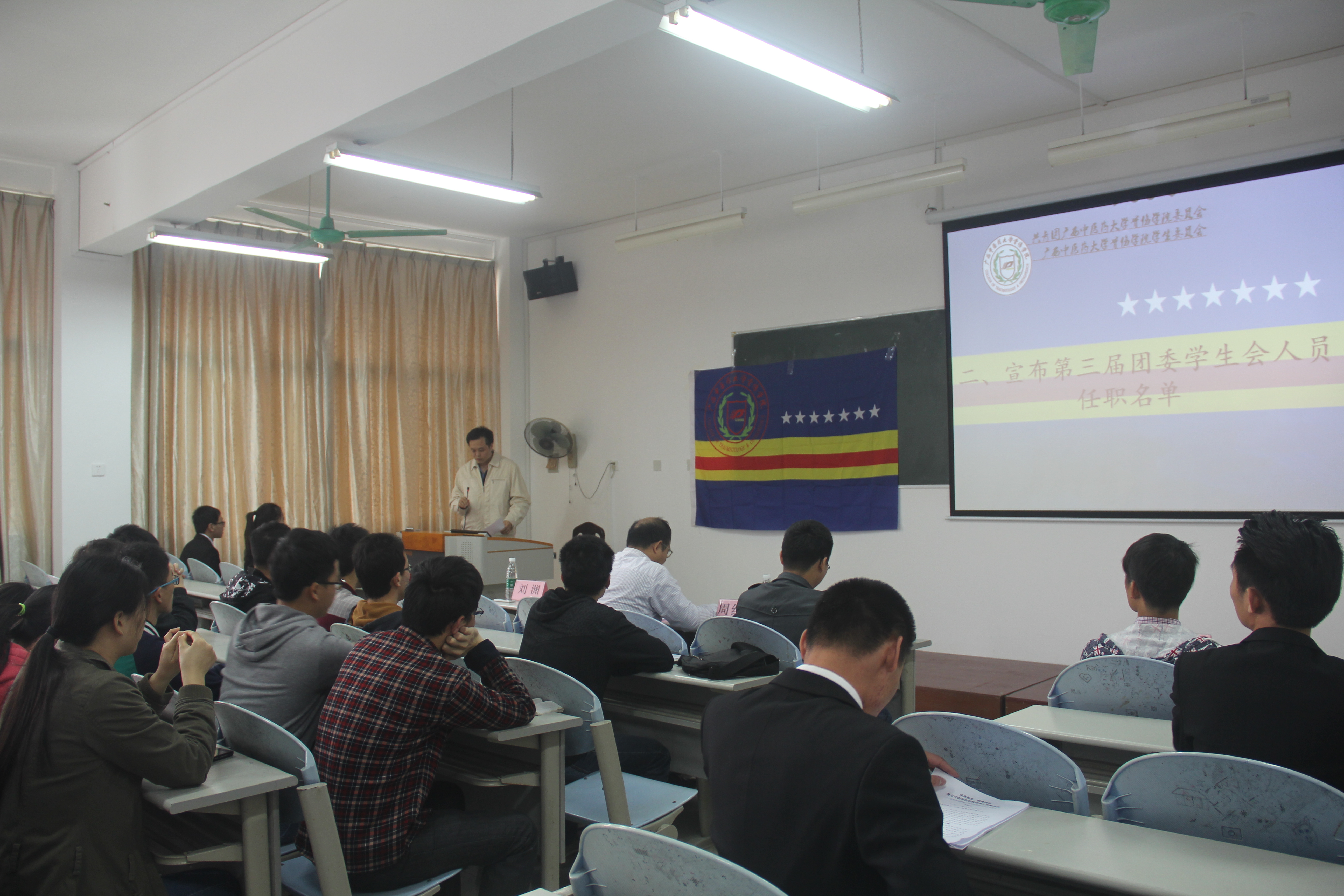 2016年3月27日下午三点,beat365官方网站骨伤学院团委学生会第二届换届大会在明秀校区新西四教室举行。出席本次大会的有骨伤学院院长周红海,团委书记刘渊老师,陆延老师和团委学生会全体成员。