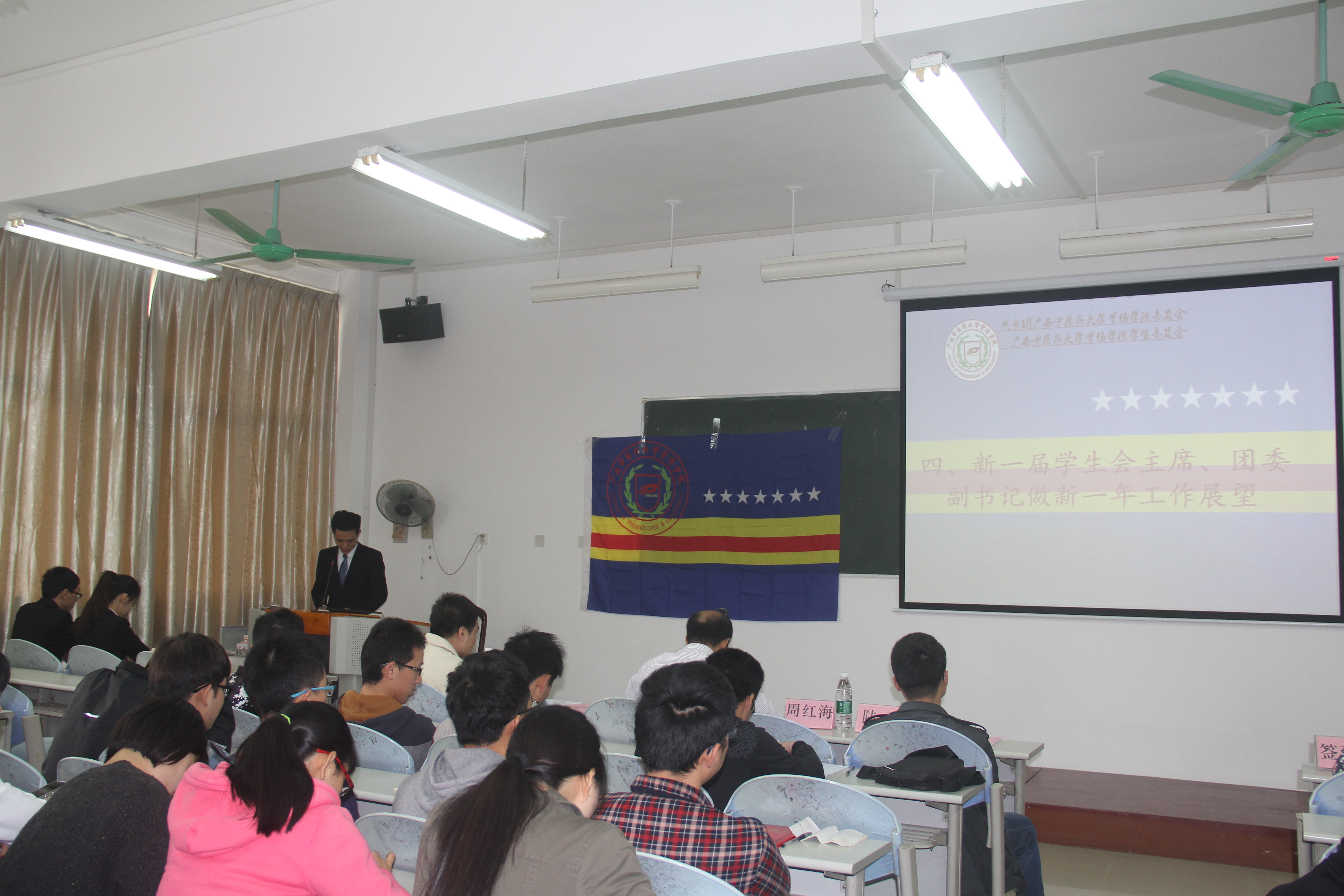 接着,新一届学生会主席陈福、团委副书记李任成分别作了新一年的工作展望,他们都表示,在各位领导老师和充满激情的新一届委员的支持下,一定能够统一思想,树立共同目标,努力推动团委学生会的进一步发展。
