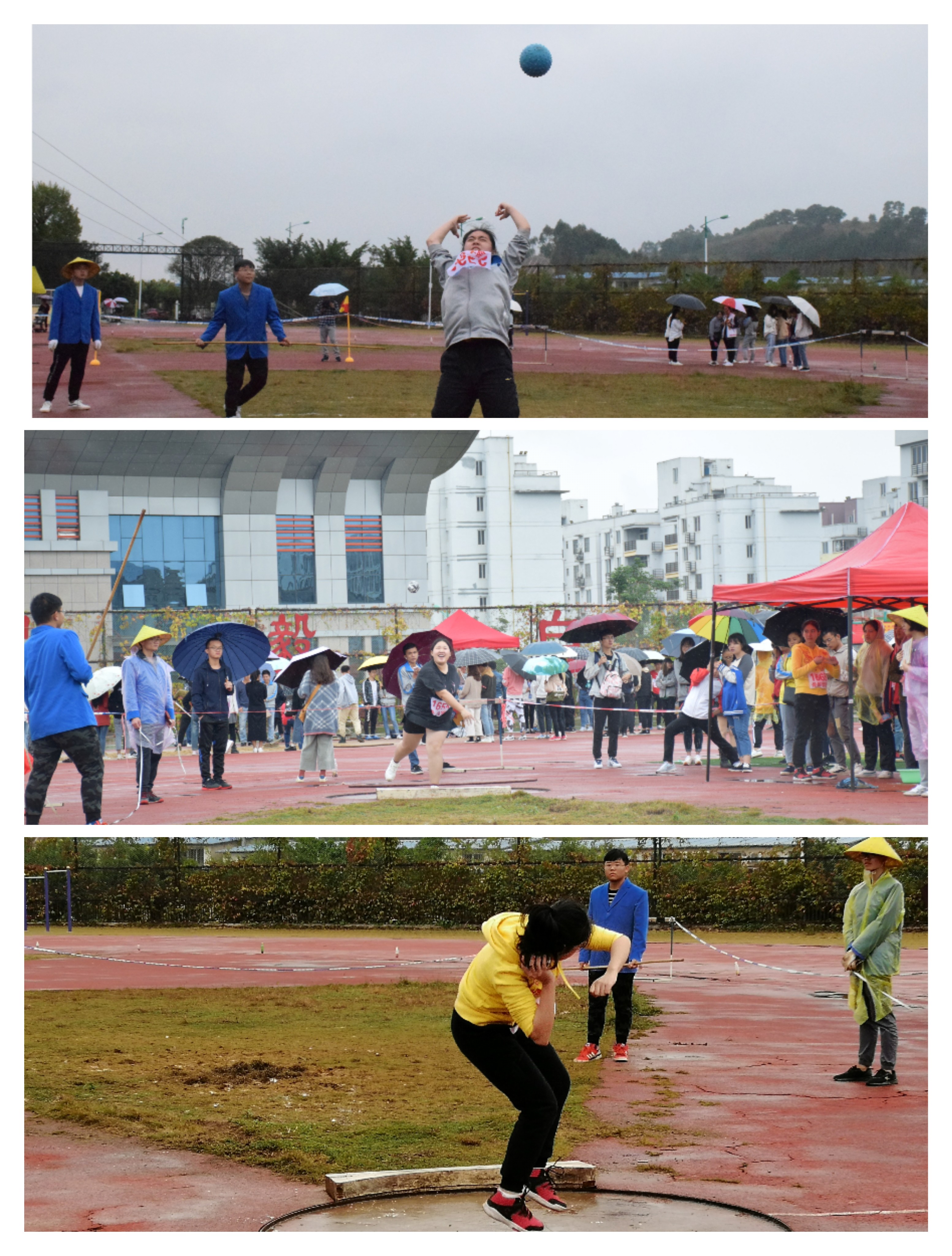 观今相,桂中医,英雄气,已迸出。细雨寒风,从明秀到仙葫,长途奔波并不能阻挡骨伤学子的激情,恶劣的天气并无法浇灭骨伤学子的热情,反而为运动会增添了一份魅力。在本次运动会中,不管是田赛实心球的奋力一掷,跳高、跳远的纵身一跃,还是径赛100米、200米跑步的奋力奔跑,男女接力赛的信任传递,以及集体项目中踢毽子的轻盈一点、十级跳的一往无前、跳绳的默契配合等项目!无论是哪一个项目,大家都是竭尽全力,相互配合,运动员们奋力拼搏!拉拉队加油喝彩!后勤提供全面保障!成为运动场上一道靓丽的风景线。
