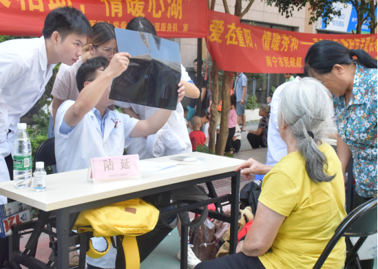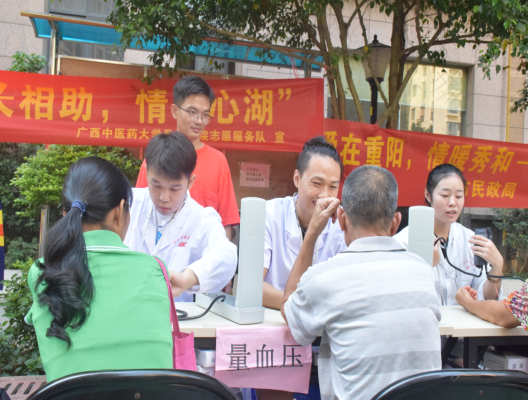 秋风送爽,九九重阳。为进一步弘扬中华民族尊老、敬老、爱老、助老的传统美德,培养学生的社会责任心和尊敬老人的优秀品质,2019年9月28日,beat365官方网站骨伤学院团委学生会在南宁市秀和社区环卫公寓顺利进行了以专家看诊、测量血压、推拿艾灸以及宣讲健康知识为主要内容的义诊服务活动。