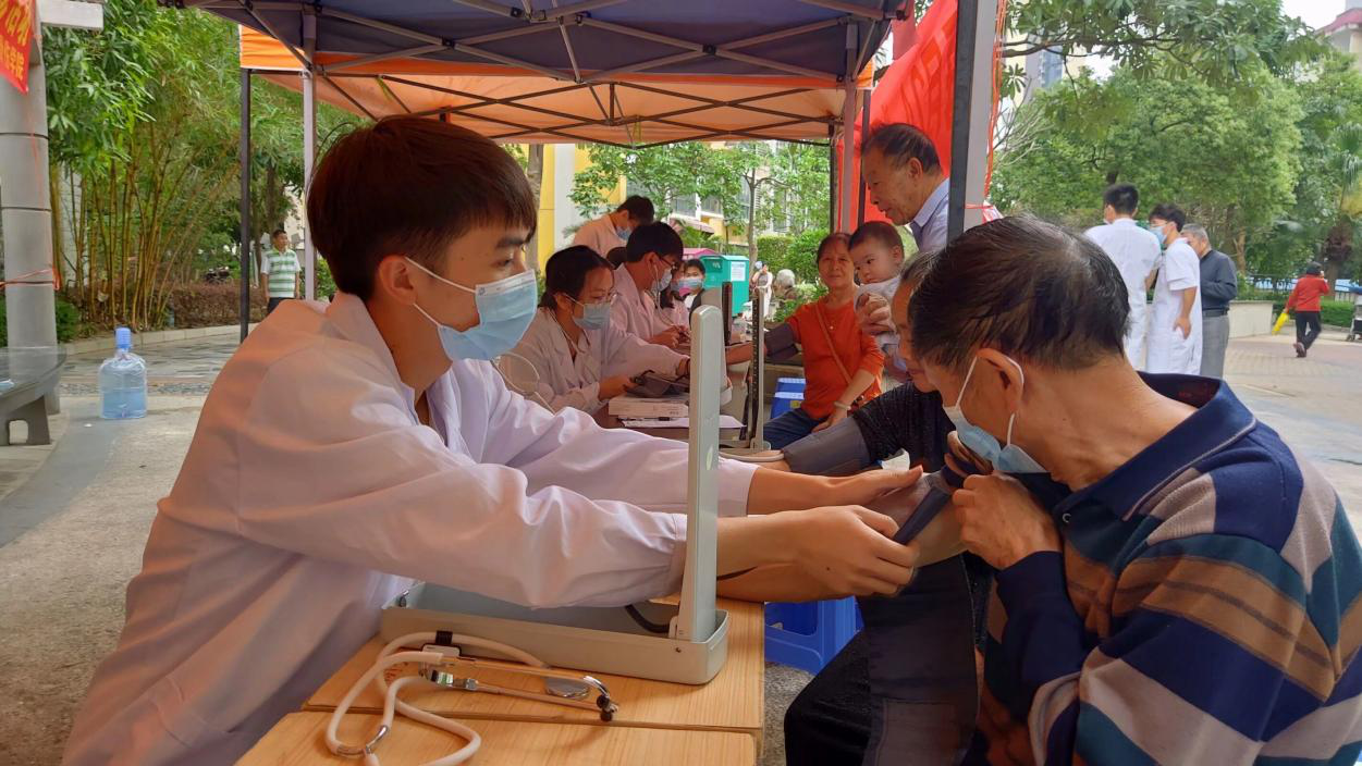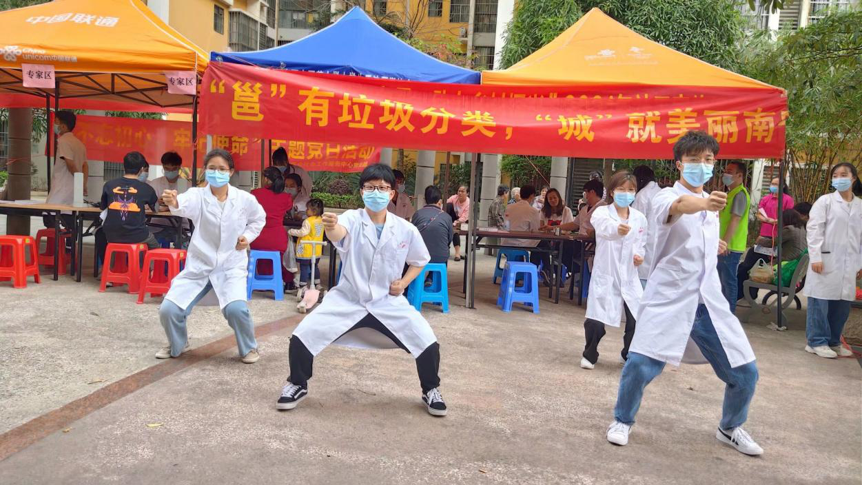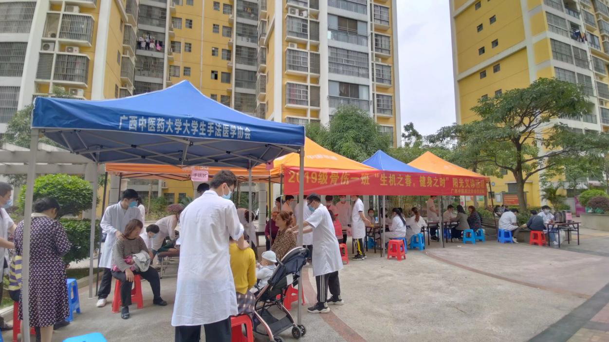 为扎实推进学党史教育,我院党支部计划举行“我为群众办实事”系列义诊活动。3月19日,“生机之春,健身之时”阳光义诊活动如期进行。此次义诊活动的具体内容包括:测血压、健康知识宣讲、骨伤科常见病的防治、八段锦健身拳法展示等。