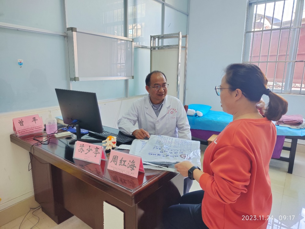 教学查房结束后,周红海教授、曾平教授在专家诊室开展免费义诊活动。义诊活动一经开始,慕名而来的群众络绎不绝。周红海教授及曾平教授为前来的病人进行耐心而细致的看诊,用通俗易懂的语言耐心讲解防病治病常识,对于骨科常见病、多发病给予合理的治疗建议及健康生活指导,并现场为一些病人进行手法、针灸治疗,效果立竿见影,群众连连称好。