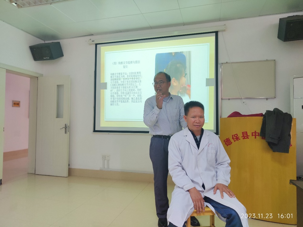 11月23日下午,周红海教授 “名中医”团队以各自专业领域展开精彩授课,为德保县中医医院医务人员推广中医适宜技术、拓宽临床诊疗思路,传播了治疗新理念。