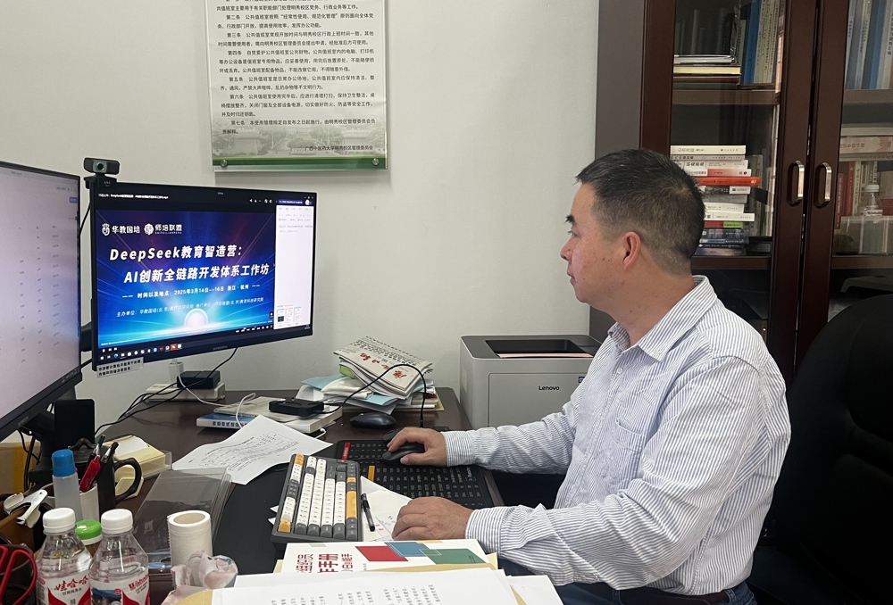 为积极顺应数字化、智能化发展潮流,进一步提升干部教师对人工智能领域前沿技术的认知及DeepSeek操作应用能力,3月26日,我院全体干部教师参加了“DeepSeek教育制造营:AI创新全链路开发体系工作坊”线上专题培训活动,本次培训由华南师范大学继续教育学院赖国雄教授担任主讲。