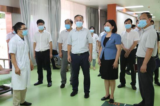 8月24日上午,自治区副主席黄俊华、自治区中医药管理局局长姚春等一行在民政厅副厅长潘志武、南宁市政府副秘书长蔡志忠、南宁市卫健委副主任、市中医药局局长李琳珊等相关负责人的陪同下莅临beat365重阳老年公寓调研指导中医药医养结合传承创新发展工作。beat365官方网站副校长戴铭,beat365官方网站附设中医学校校长、重阳老年公寓院长刘竑清等热情接待。