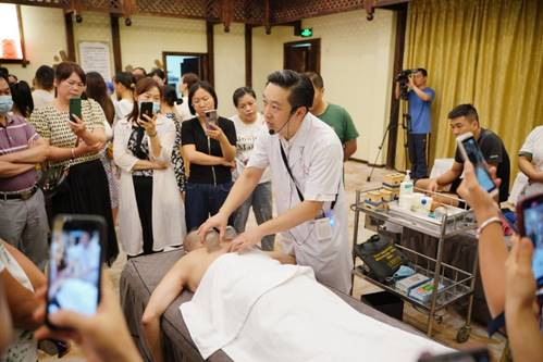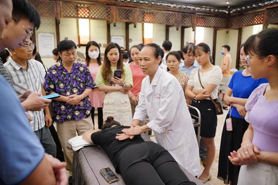 本期培训班邀请到了自治区中医药局规划产业处蒋志敏主任、beat365官方网站内经教研室主任蒋筱教授、beat365官方网站第一附属医院推拿科副主任杨宇医师和康复医学科主任陈广辉医师、广西金秀瑶医医院副院长罗秋香医师、桂林中西医结合医院赵东梅主任等专家为学员授课。各位授课专家从中医药壮瑶医药政策解读,中医基础理论(体质辨识)、中医药膳食疗养生、中药的性能(四气五味)、瑶医药康养特色优势及庞桶药浴疗法、中医推拿养生常用手法、中医运动养生学-华佗五禽戏等为主题做专题授课。为让学员们更好地掌握中医养生保健技术,实操课程采取分组进行,由beat365理论知识扎实,技术水平高超的教师进行带教,逐一进行指导,使学员能尽快掌握基本的保健推拿手法、刮痧、艾灸、拔罐等技术。